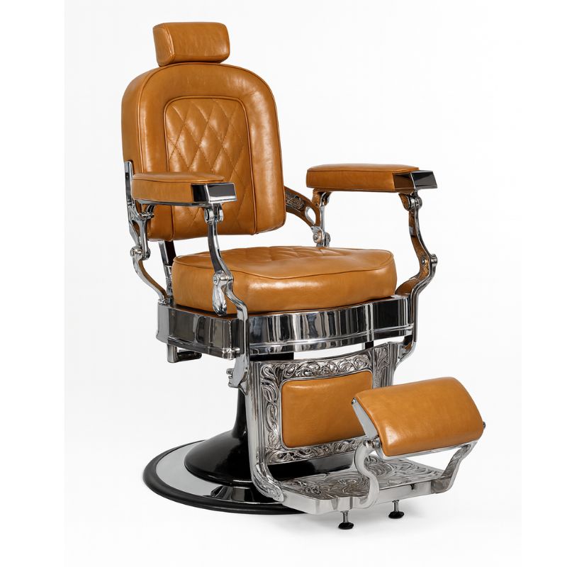 Design clássico com estrutura cromada detalhada e estofamento em pele preta (imagem ilustrativa). Encosto e assento seguem o padrão original com acabamento acolchoado e costura em losango.