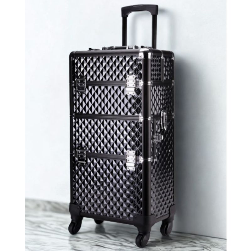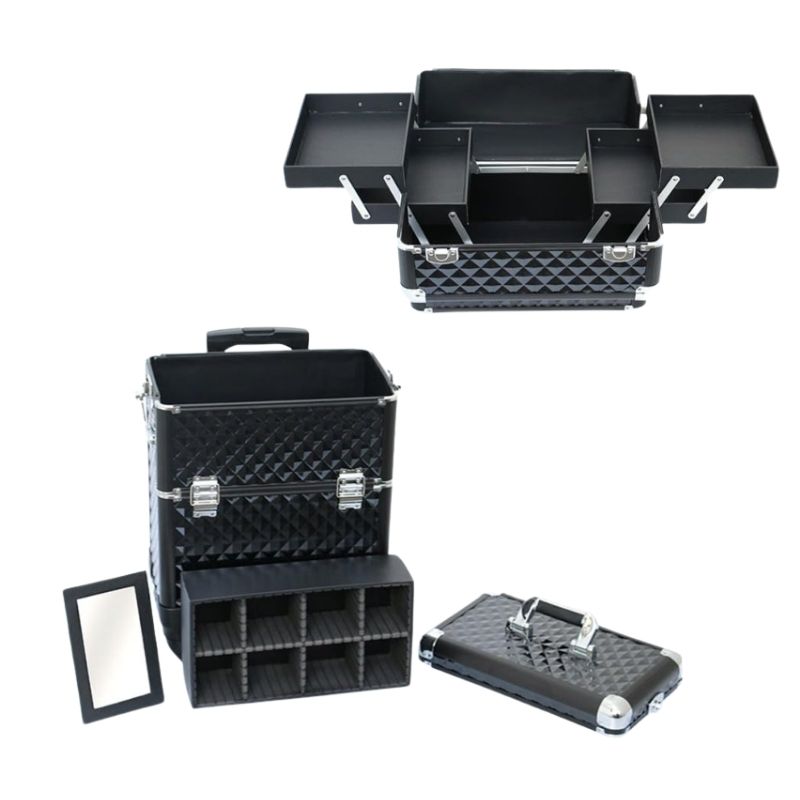 A Mala Trolley Preta é a solução ideal para profissionais de maquilhagem e design de unhas. Com um design robusto e seguro, é fabricada em alumínio resistente e cantos arredondados para garantir máxima estabilidade durante o transporte.