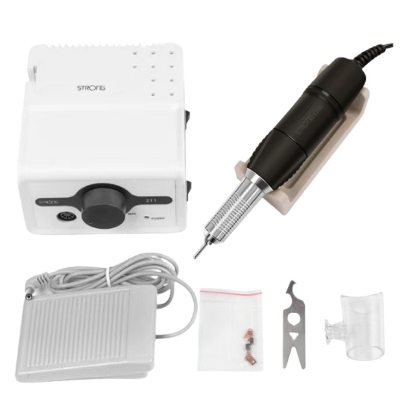 Máquina de polimento profissional com 40.000 rotações, potente, versátil e segura, ideal para uso profissional em manicura, pedicura e estética avançada. Certificada segundo as normas europeias CE (EMC, LVD, RoHS), oferece performance fiável com máxima segurança no uso diário.