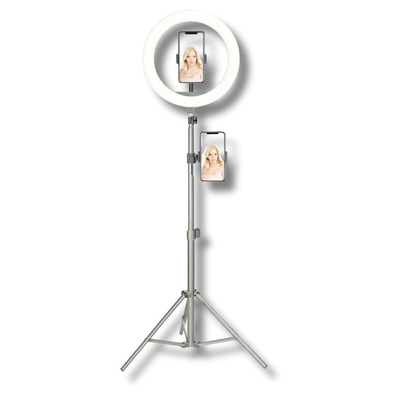 Luz de 45W com design versátil e funcional ajustável entre 70 e 210 cm, garantindo estabilidade e praticidade. Incluí 3 suportes para telemóvel e comando remoto para maior conveniência, possui um ajuste de iluminação em três core, com diferentes níveis de intensidade, oferencendo felixibilidade e qualidade em qualquer utilização.