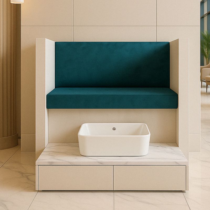 Este assento para pedicure combina conforto e sofisticação, tornando-se a escolha ideal para salões de beleza e spas que procuram um ambiente elegante e funcional. O design estruturado oferece um encosto e assento estofados para máximo conforto, enquanto a base com acabamento marmorizado e a cuba integrada proporcionam praticidade e requinte ao espaço. Fabricado com materiais duráveis e fáceis de limpar, garante uma experiência premium tanto para os clientes como para os profissionais.