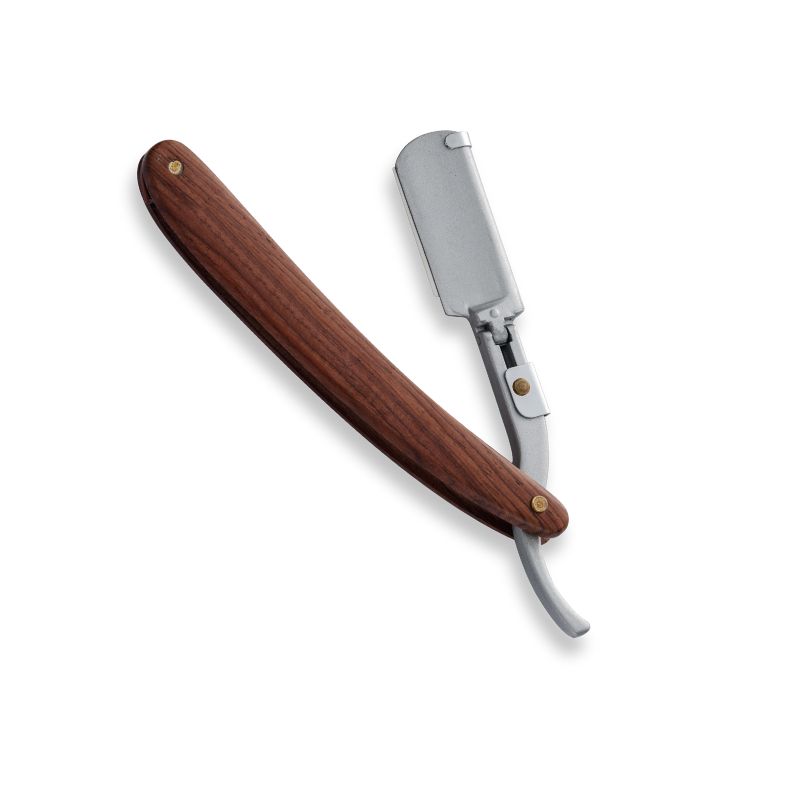 Lâmina com cabo de madeira, disponivel em faca de titânio prateado.